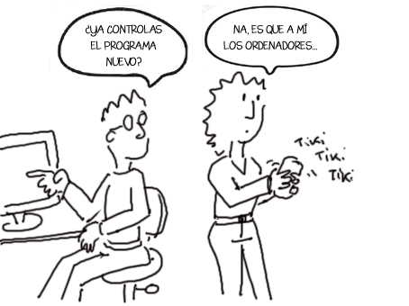 La parte técnica no lo es todo: trabajar con un ordenador supone una forma distinta de entender la herramienta de trabajo y las relaciones que crea. De repente todo está en el mismo sitio, en esa caja de plástico, y parece que ya no va a hacer falta hablar con nadie (peor aún, parece que no va a ser posible porque no podrán quitarle ojo a la pantalla). Por no hablar de dónde quedan todas esas habilidades, perfeccionadas durante años, que convertían a alguien en un trabajador valioso, y que de repente se van en humo sólo porque no es capaz de acertar a la primera con el ratón en un icono minúsculo. Crea situaciones de aprendizaje que den apoyo y alivien frustraciones: no te centres en la tecnología sino en las funciones, siempre dentro de un contexto que los usuarios puedan reconocer. Dales un entorno seguro donde experimentar los primeros sinsabores sin consecuencias, y superarlos con confianza.